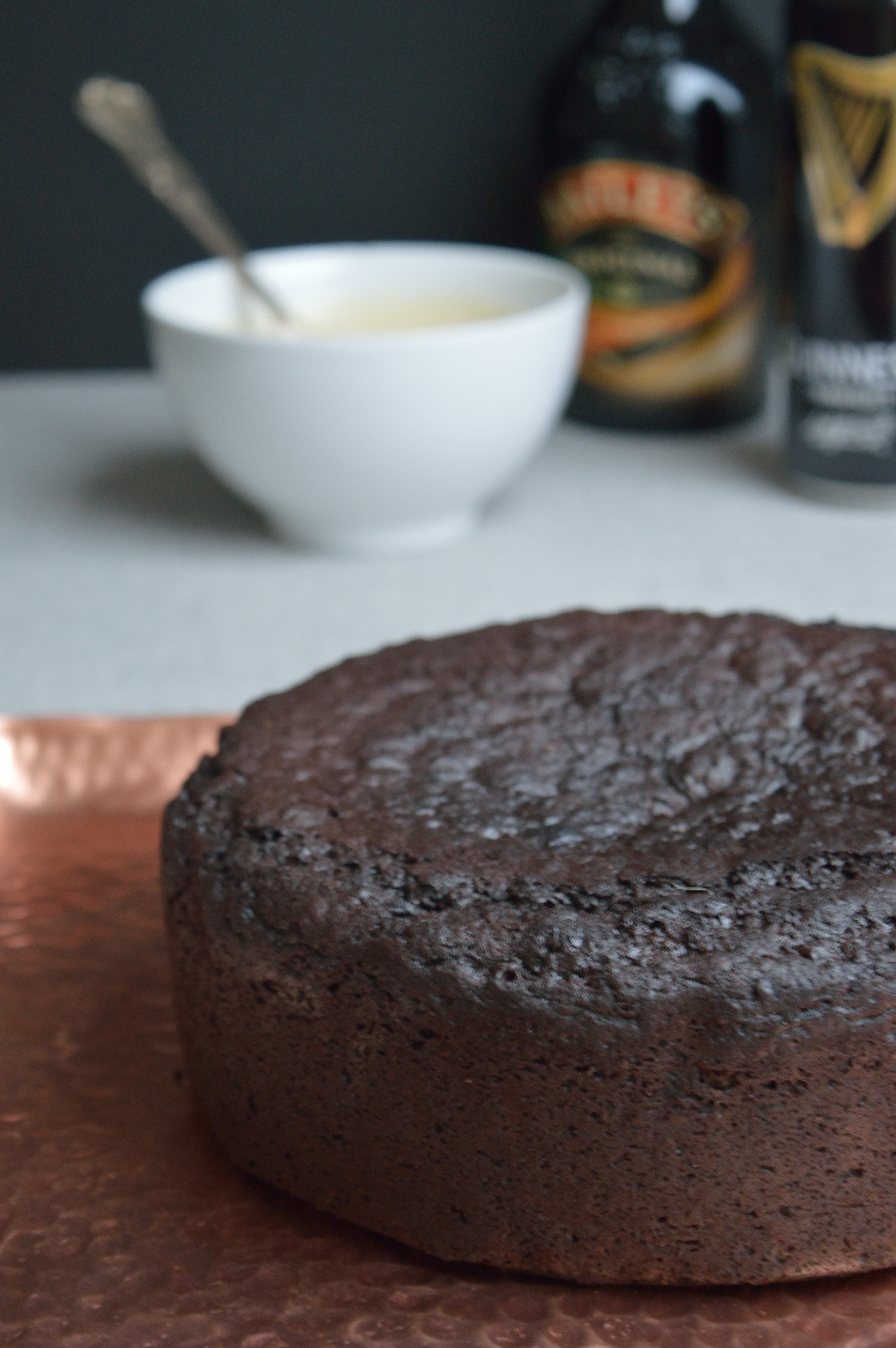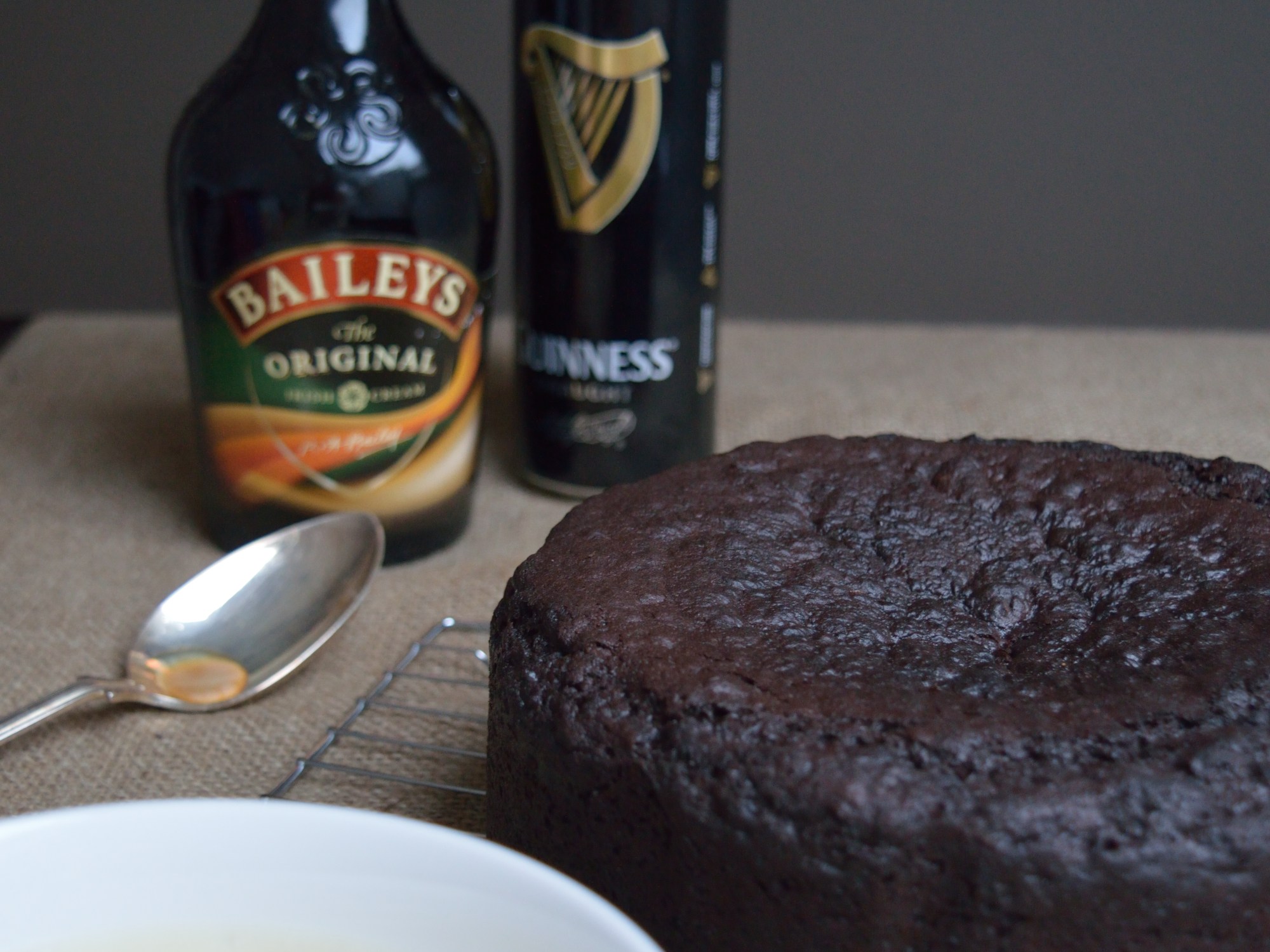 Mother of god. I was going to make something green for Patrick’s day using pistachios. Do you know how expensive they are? Very. Very expensive indeed and as I’m not all that partial to them, despite their convenient hue, they can feck off. Instead let us enjoy some deep, dark chocolate stout cake. Not missing the pistachios so much now ay?