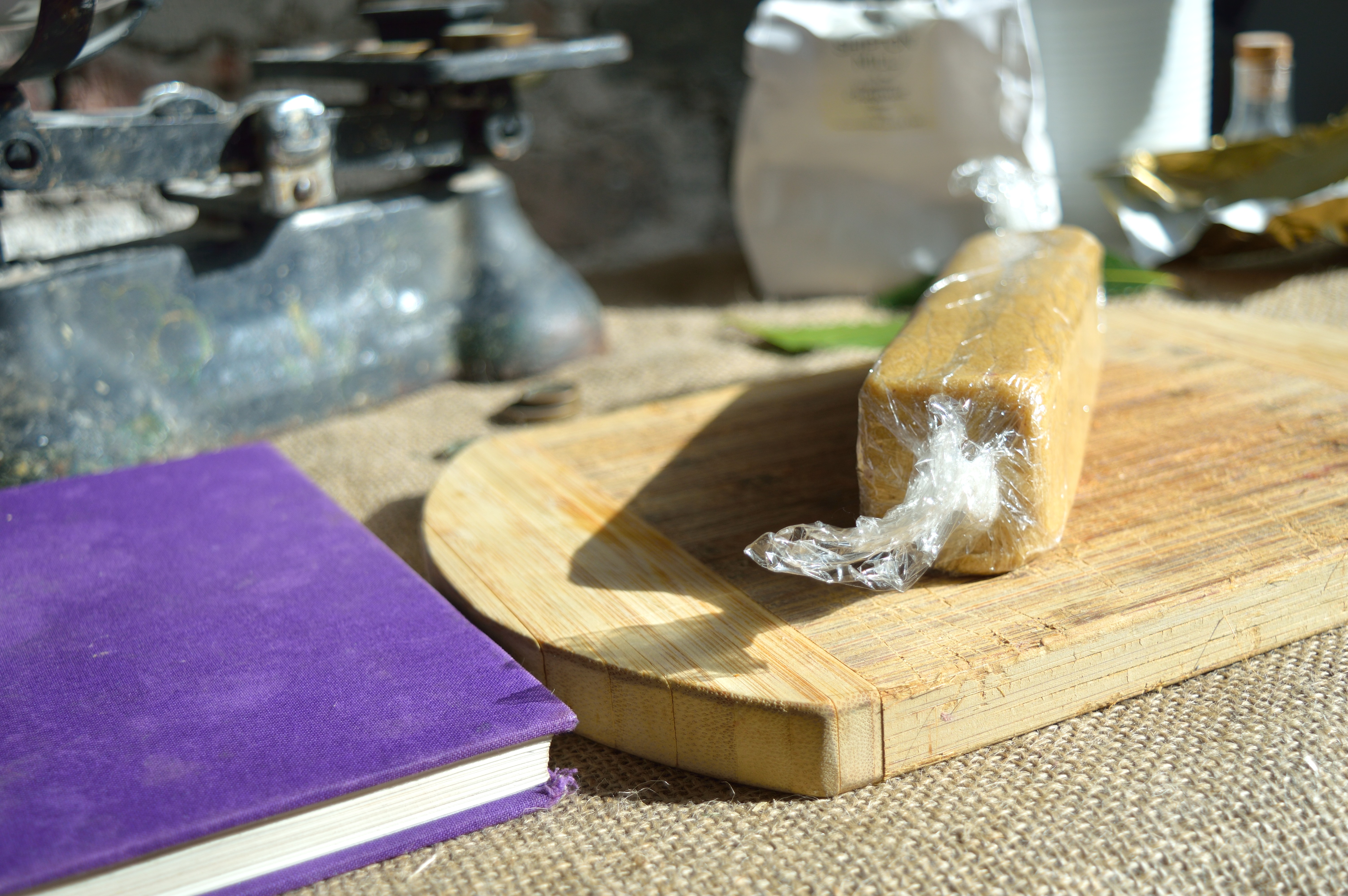 I, however, like these particular lovelies square. So once you have the dough cylindrical and wrapped, toddle off and find yourself something flat. I chose my geological notebook, alas the only use for it now. Press the cookbook down on the dough to flatten two, opposing faces then turn over onto the remaining curved sides and squish again. Keep squishing the sides until you’re happy with its angularity. You should now have a particularly elongated cuboid. What do cuboids love doing? Relaxing. So put it in the fridge for twenty minutes.