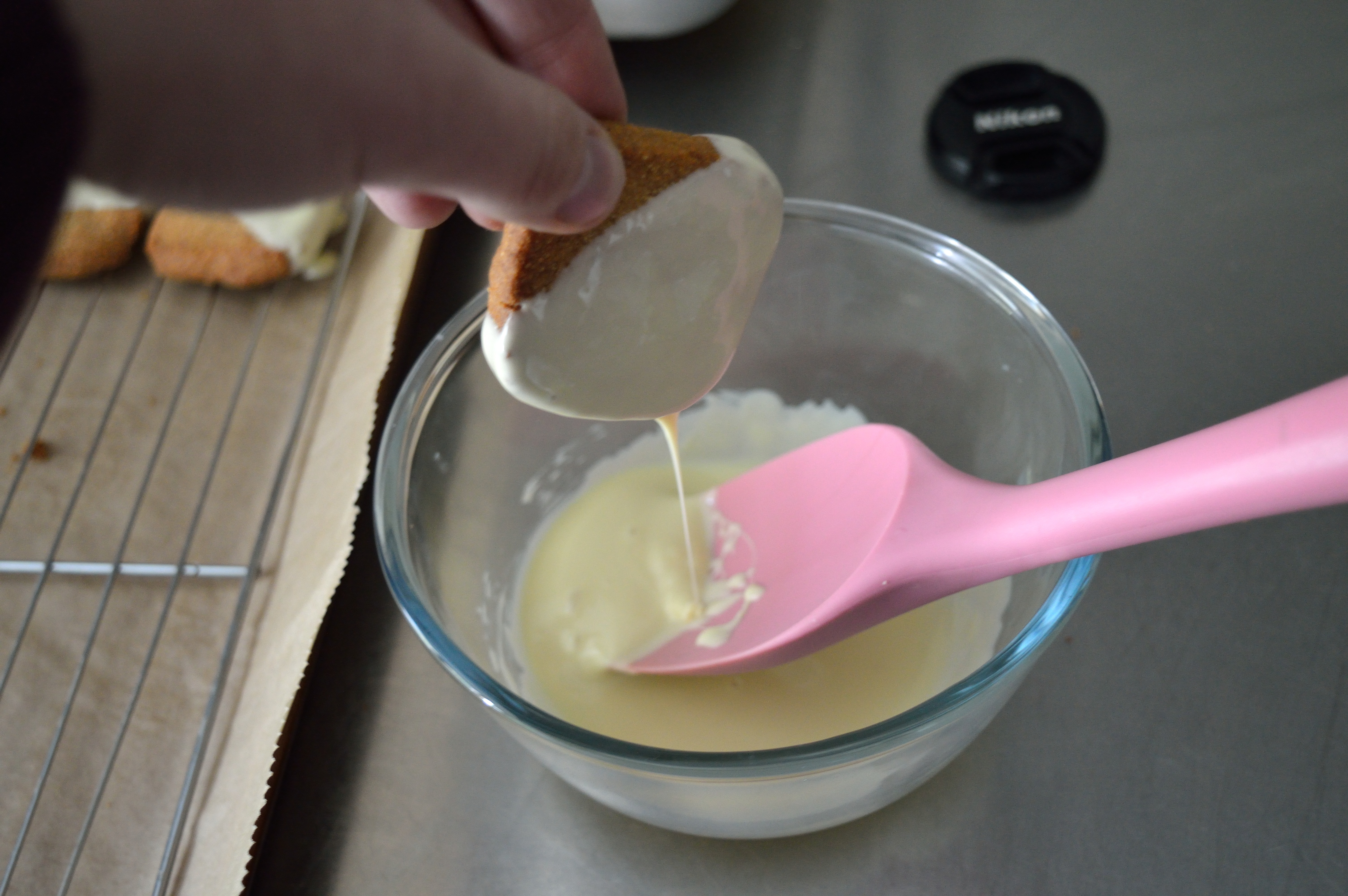 And finally, doesn’t everyone love chocolate? Yes. Yes they do. I know I’m always coating things in chocolate but it makes everything better. If you for some undiagnosed disorder do not desire your biscuits to be smothered in chocolate then leave the poor beasties naked.