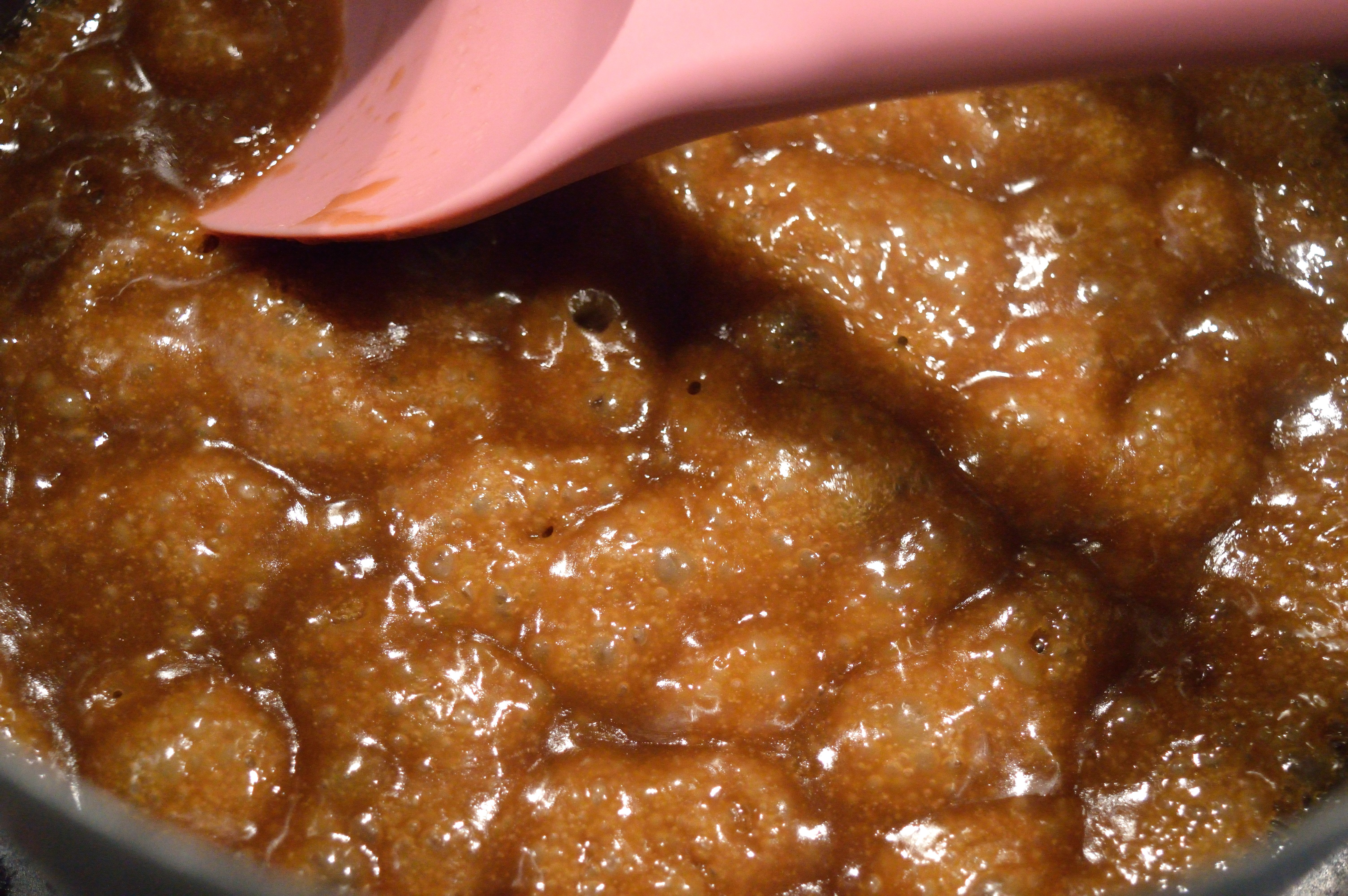 Put the butter and sugar into a pan and melt on a high heat until all the sugar has dissolved. About 2mins from when it starts properly bubbling.