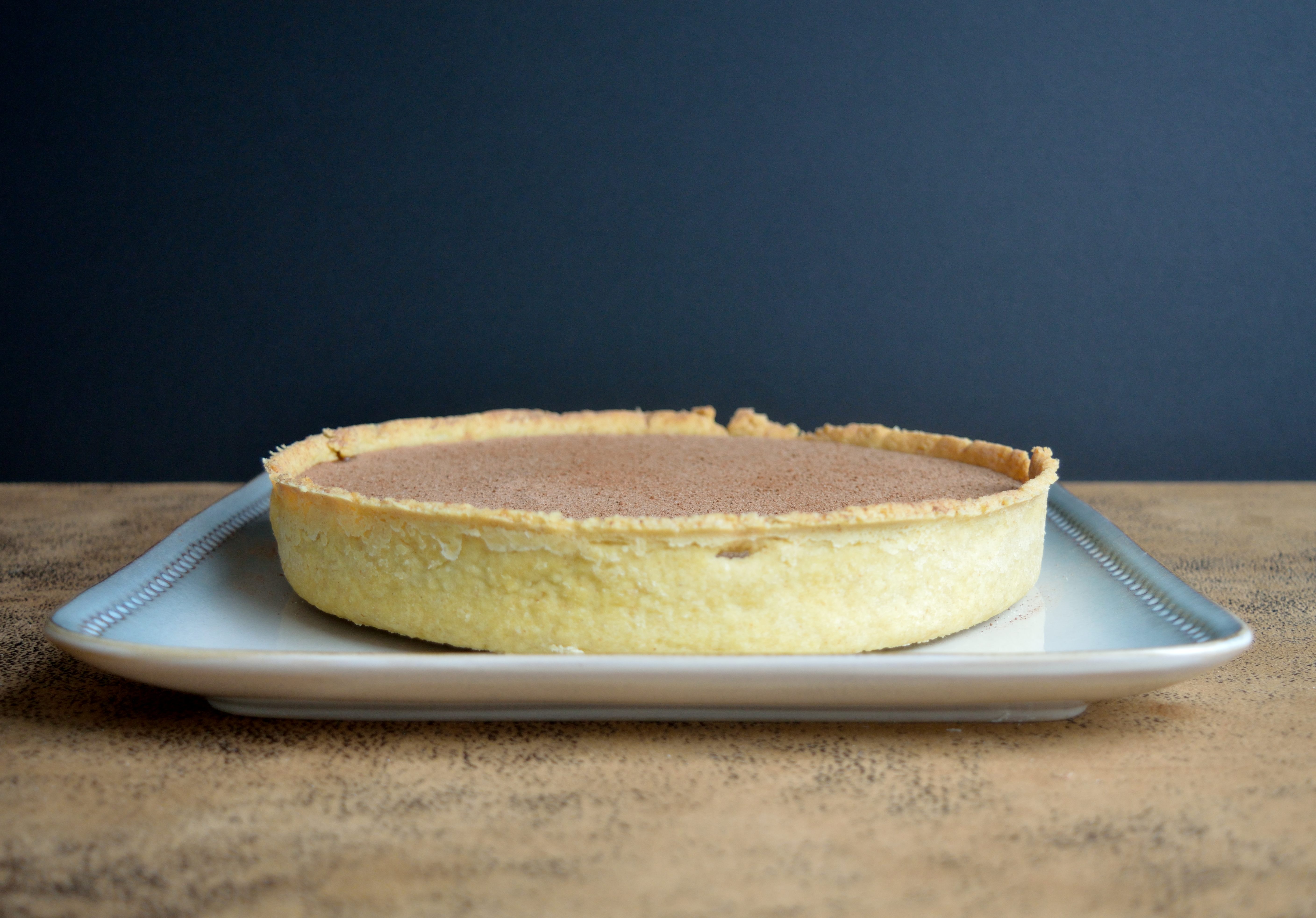 Take off the heat for the final time and whisk in the milk chocolate, which should be broken into little pieces if you’re not using chocolate drops. That’s it. Pour into the cooled pastry case and put the whole lot into the fridge to set (at least two hours). I sieved a mix of drinking chocolate powder and cocoa powder over the top just to look a bit fancy but this isn’t essential.