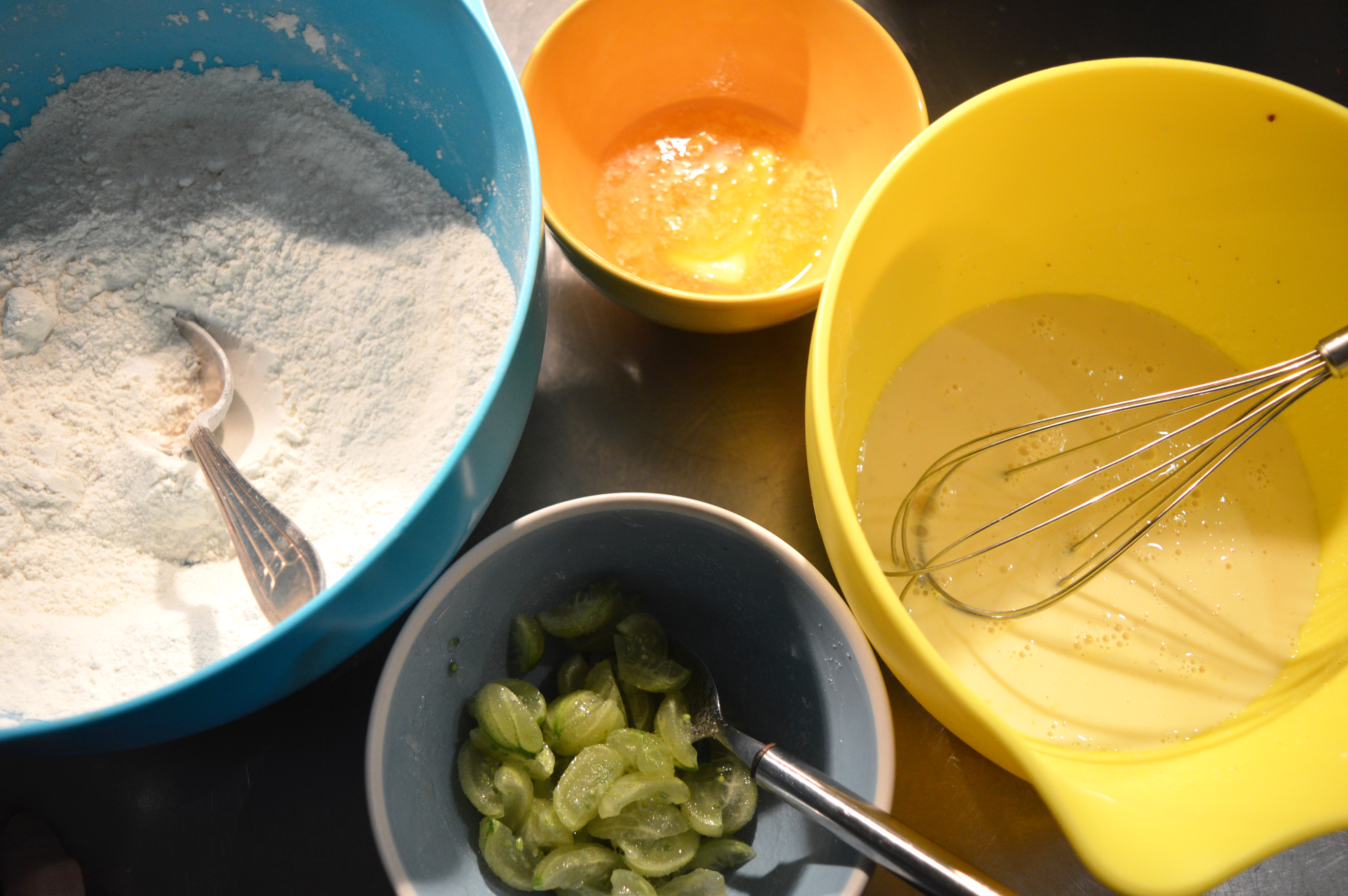 I’ve never used gooseberries in a cakey item but thought I’d give it a whirl. The idea of gooseberries and white chocolate seemed good so that is what we have; gooseberry and white chocolate muffin buns. I used the skeleton of a Nigella recipe (original here) but threw in a bit of buttermilk and gooseberries instead of raspberries and finished them of with snot icing (only snottish in appearance, it hopefully tastes much nicer).