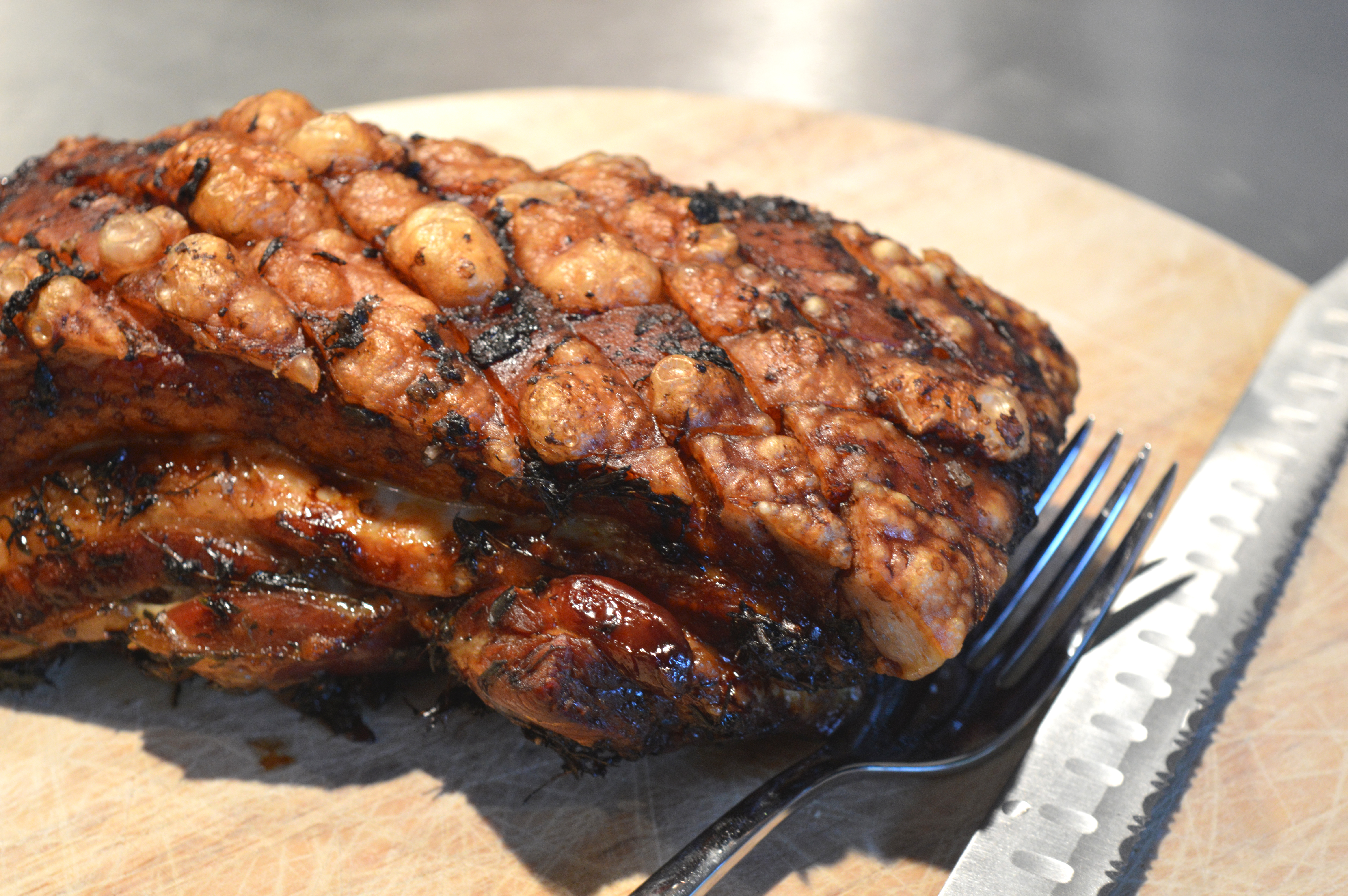 So, all that being said, I feel like a recipe for a big hunk o’ crispy, salty, juicy, unashamedly unhealthy meat is called for. Step forward pork belly. I should mention that meaty roasts aren’t really my forté despite my love of them. I gave this BBC recipe a whirl. It falls somewhere between a quick and a slow roast, that is 3hrs.