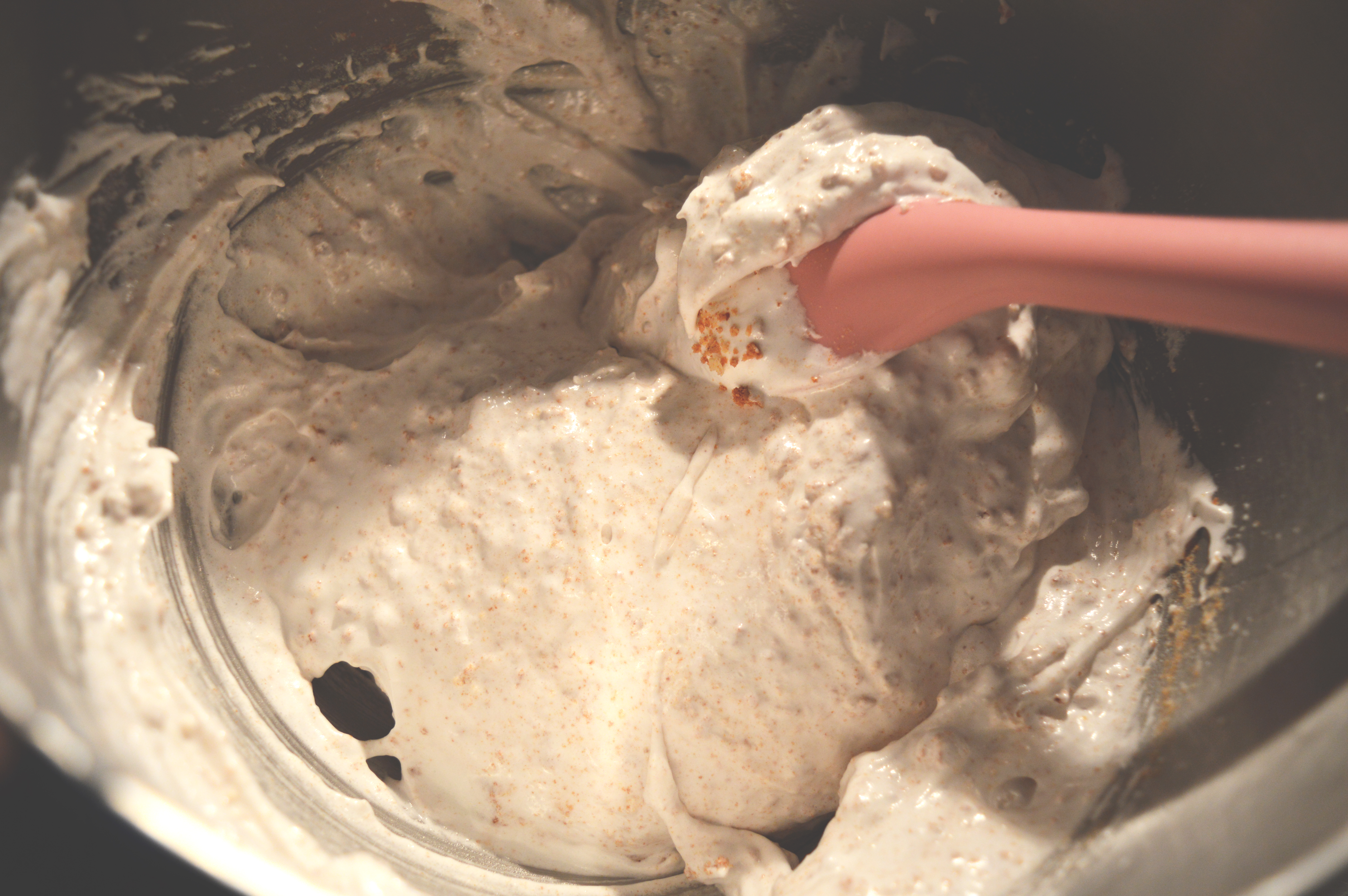 Empty in the biscuit crumbs and fold gently.