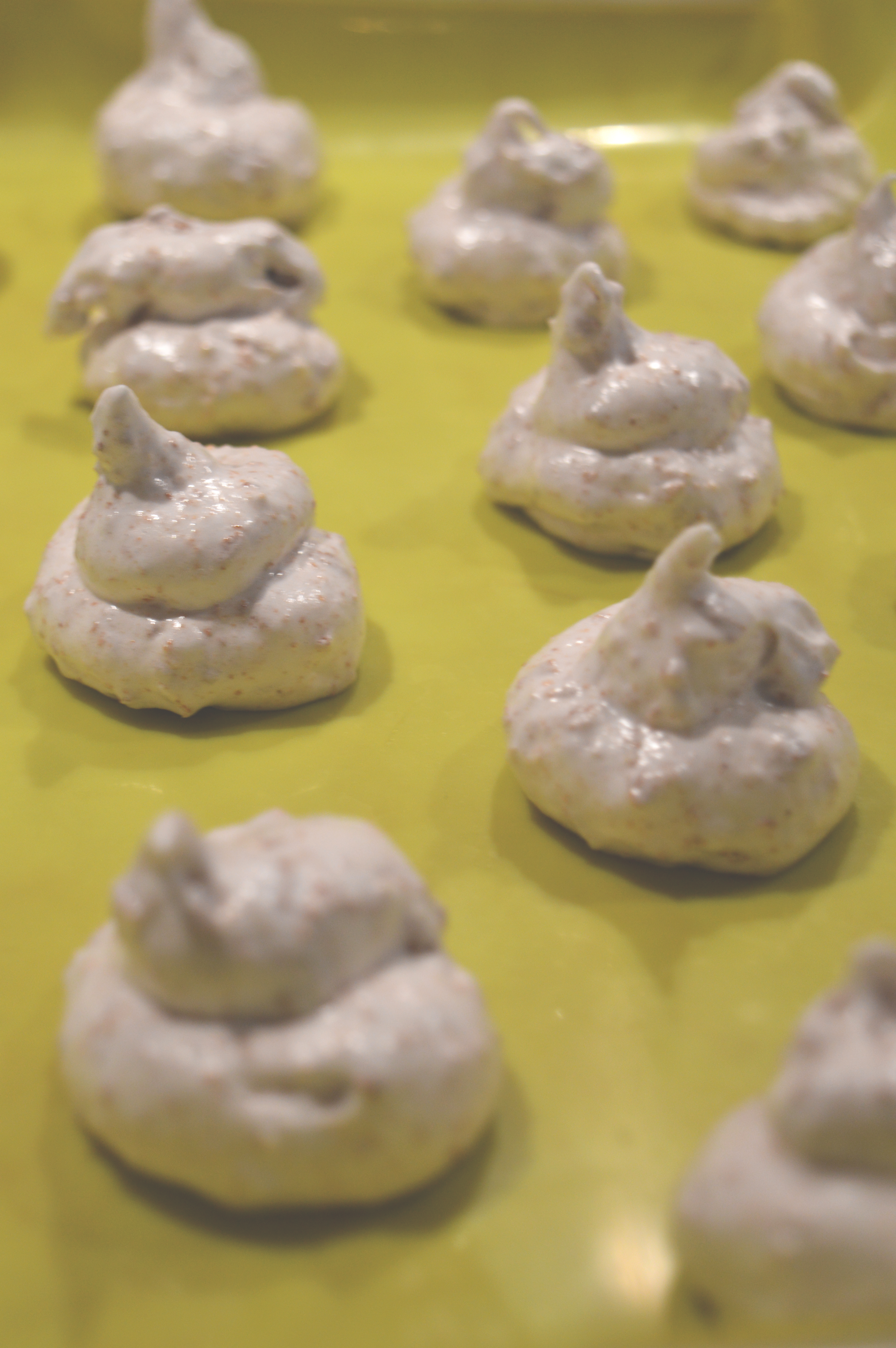 I chose to pipe mine because I’m fierce fancy but if you have neither the piping bag nor patience then use two spoons to shape the little mounds. You can flatten down the spikes if they offend you but they were polite to me and so I let them be.