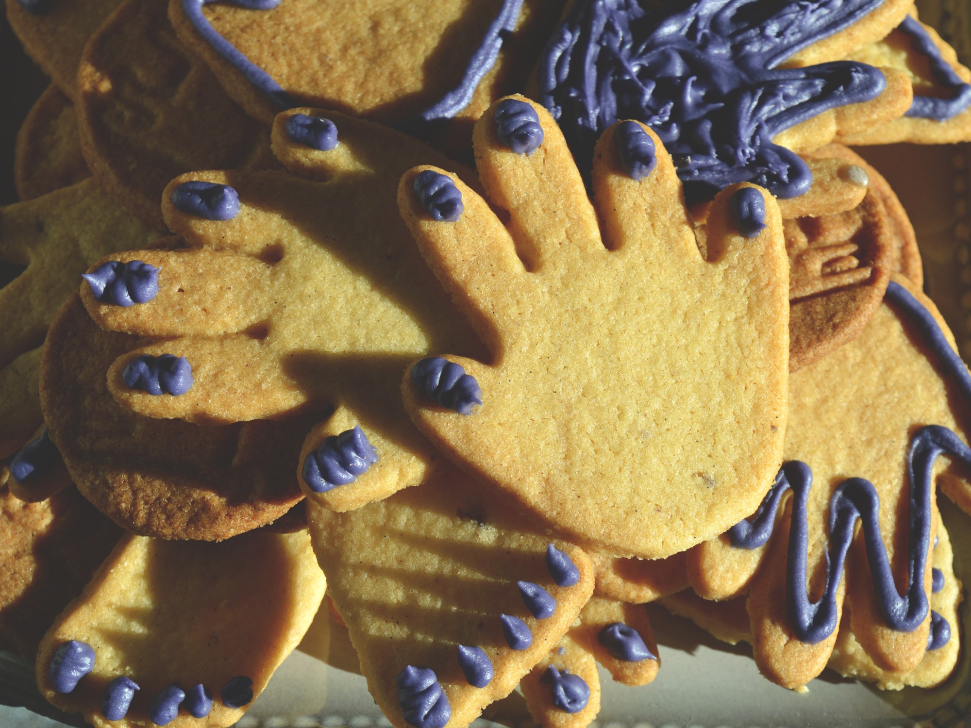 The decoration is a little random but to explain, I can’t seem to go into Tiger (a Scandinavian pound shop in effect) without buying something. Usually bakeware and made of brightly coloured silicone. Last week was no exception. I bought my first biscuit press. I have to admit it was foolishly satisfying using it. Stamp aside, I also possess some hand and foot shaped cutters which seem apt for the season in it.
