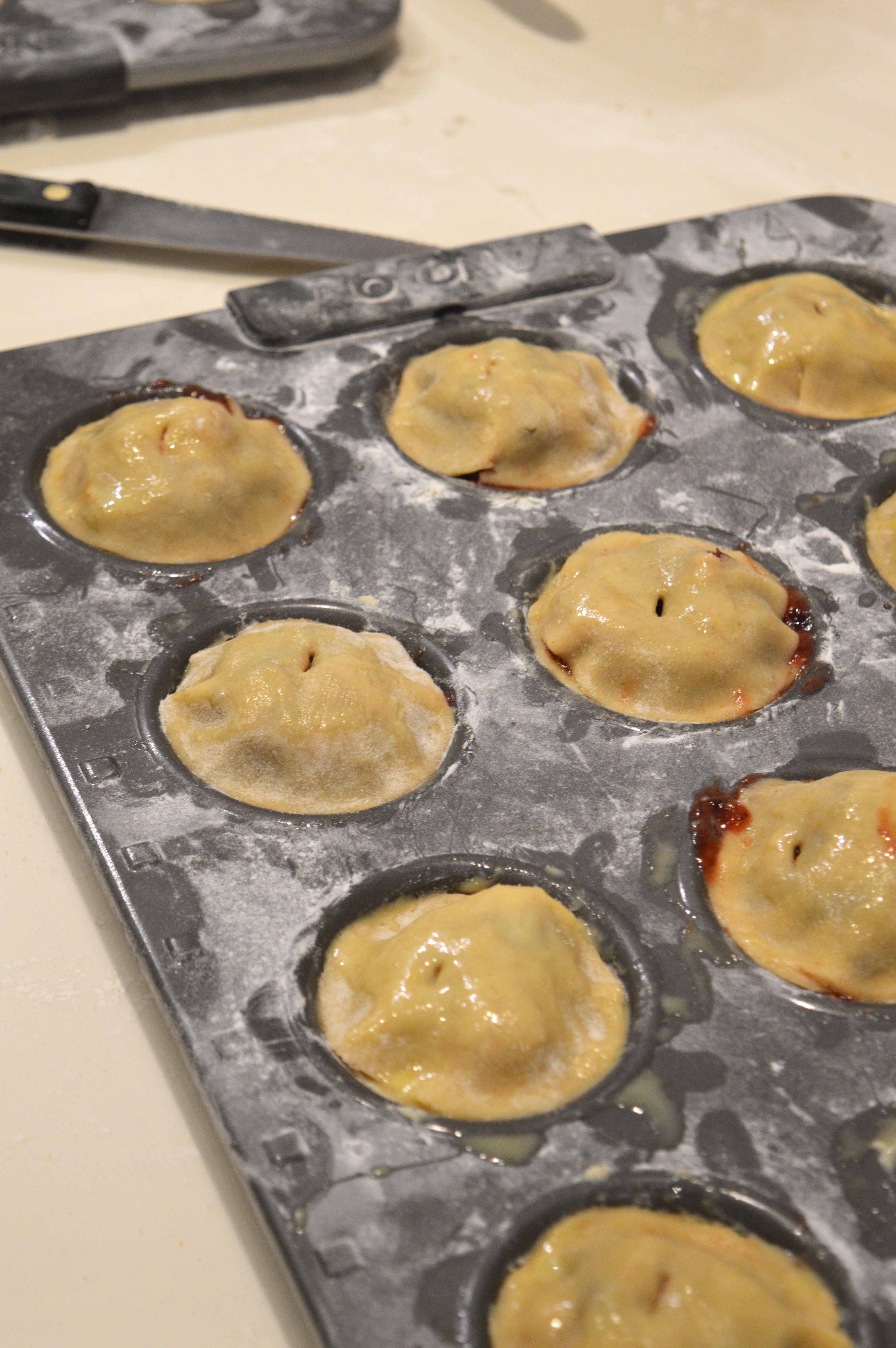 You can egg wash the top of your pies if your feeling fancy and then stab each one to give the steam somewhere to go.