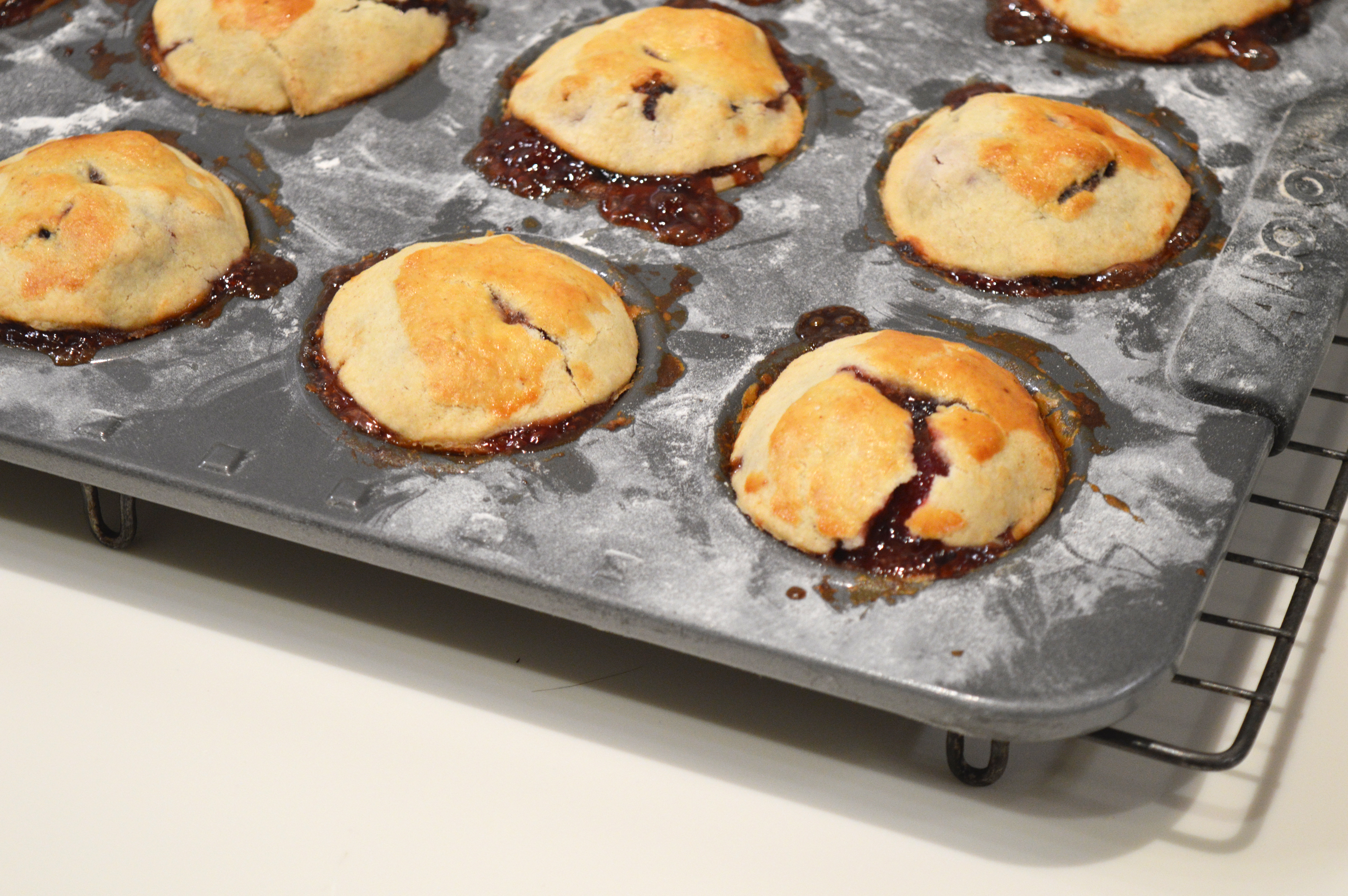 Put the trays into the preheated oven for 20mins in total but turn the trays after 1omins to make sure everything browns evenly. They’re done when they’re beautifully brown. Remove them from the oven and let them cool down entirely in their tins. If you don’t you’ll burn your hands and all the pies will fall apart.