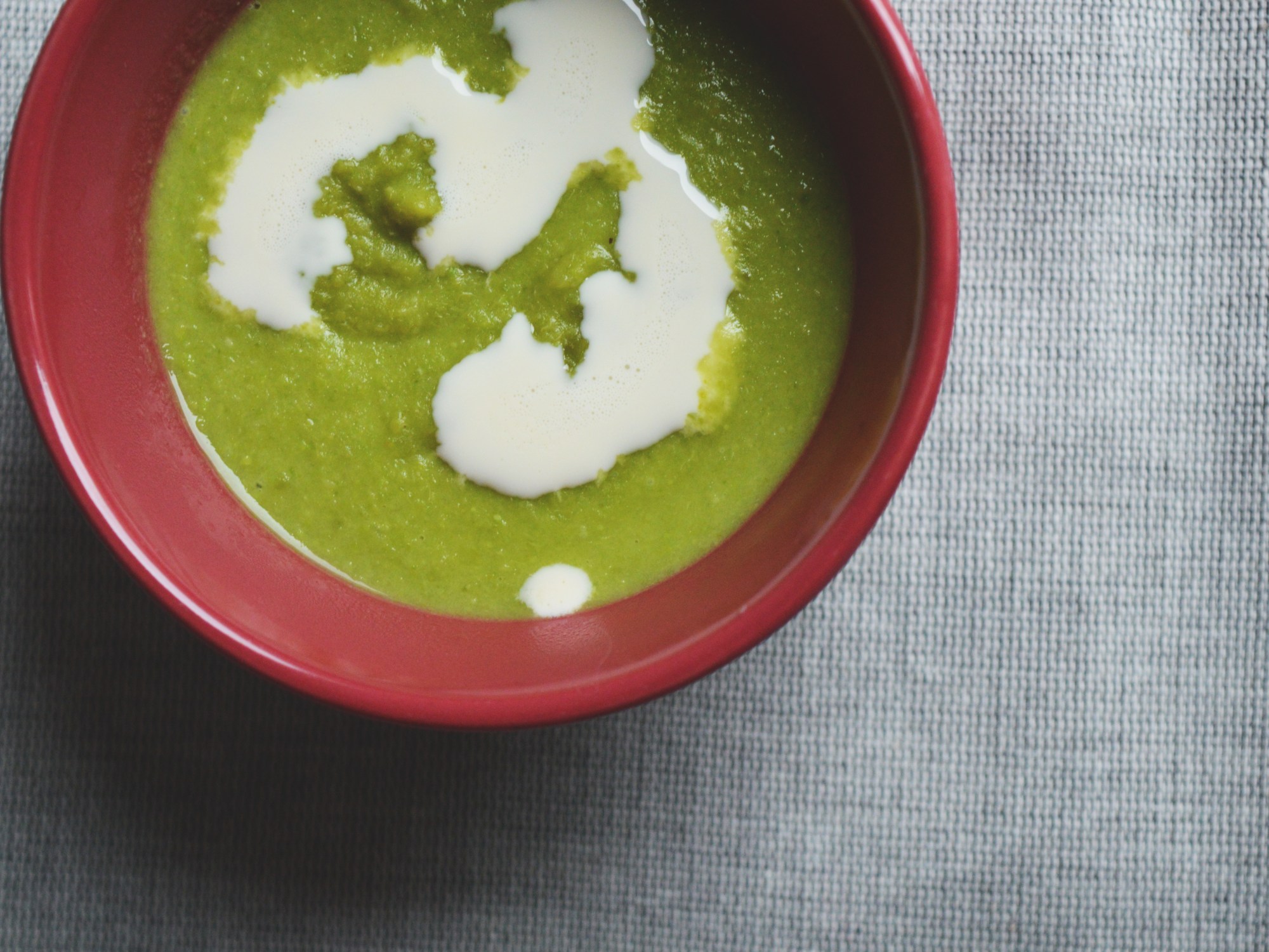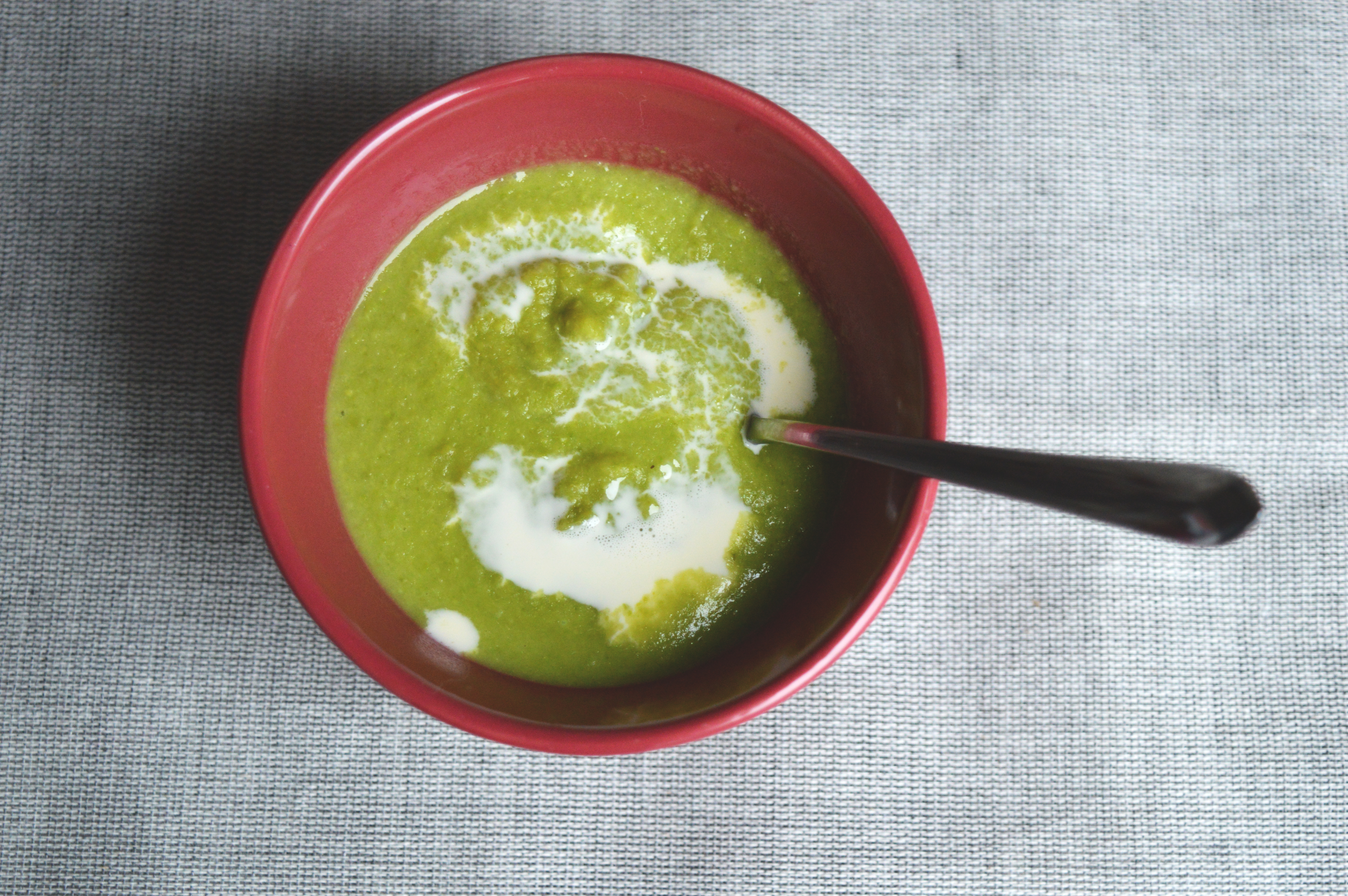 When you’re happy your peas are hot, take the pan off the heat and blitz the soup till smooth. This is where the cream comes in, use it too thin the soup to your liking.