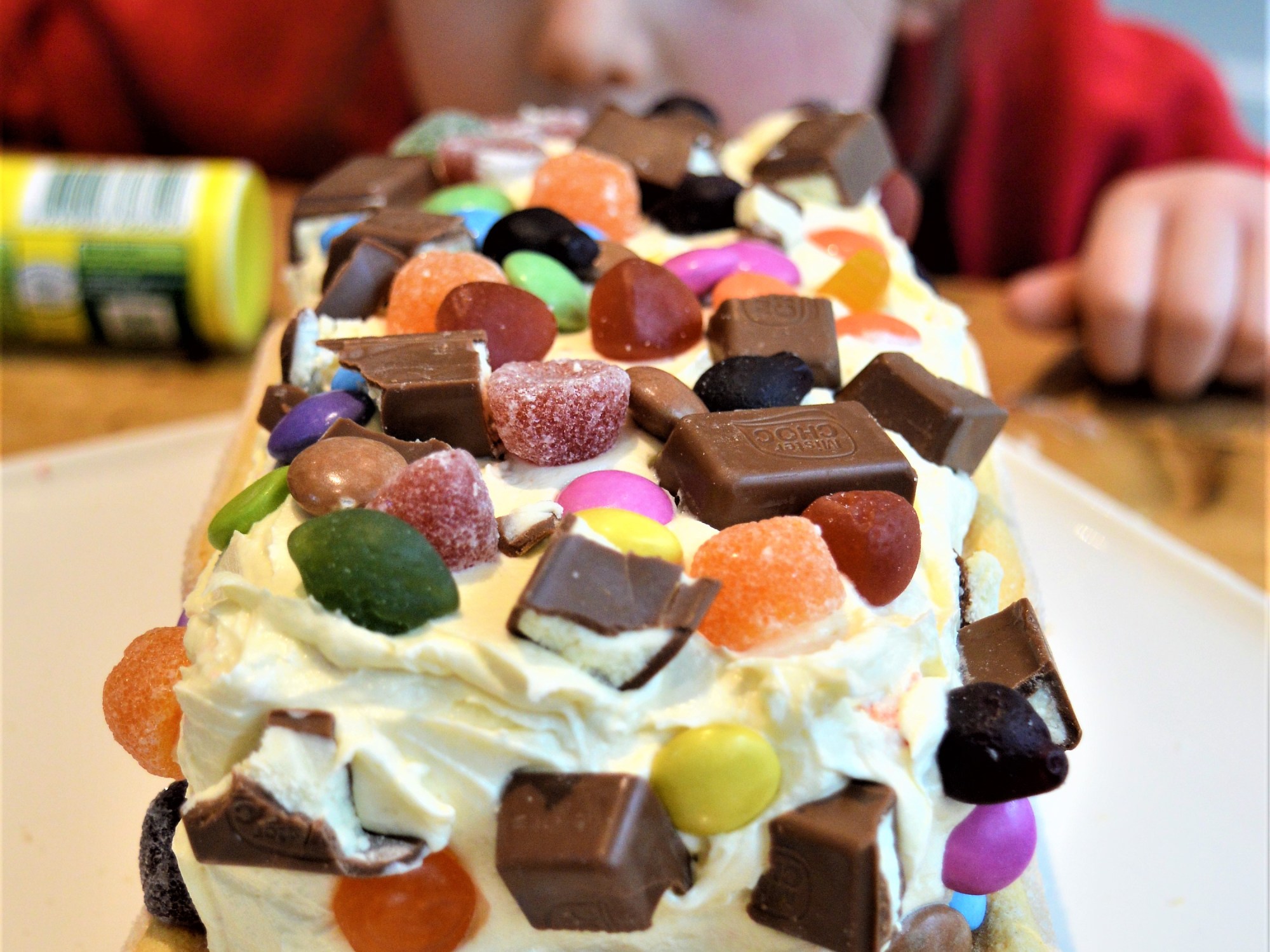 In any case my sudden athletic awakening coincided with my niece’s birthday. She deserved cake and cake is what she got. I do not exaggerate when I say this was the best cake ever. Granddad made the cake itself. He used the battenberg tin that sister #3 kindly bought me in Cork for my birthday. So look at the picture below and realise that the outside glory is only the beginning of the wonder of the cake as a whole. It is kind of a batternberg but without the marzipan.